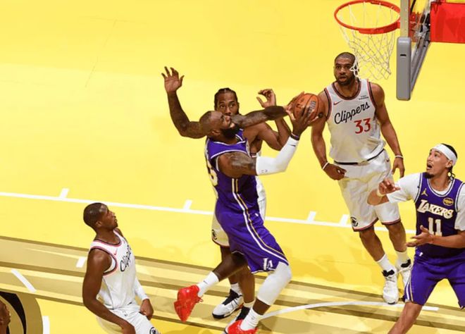 易边再战,詹姆斯挡拆突破后左手抛投打板命中,东契奇迎着瞄准镜祖巴茨干拔三分再中,三分已经11中7砍下35分,湖人领先到8分。詹姆斯不看人直塞篮下送出妙传,八村垒摆脱防守接球轻松暴扣,随后詹姆斯迎着祖巴茨中距离跳投再中,湖人领先至两位数。哈登三分命中又欧洲步打进,伦纳德急停干拔中距离再中,快船一波11-0反超湖人。哈登突破过掉詹姆斯后掉球失误被抢断,随后赔上第3次犯规,东契奇连线詹姆斯送出妙传,后者空切接球打成2+1,三节打完,湖人98-93领先快船5分。